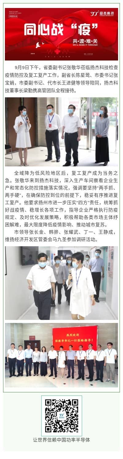 扬州市委副书记、代理市长王进健莅临扬杰科技调研疫情防控和复工复产工作